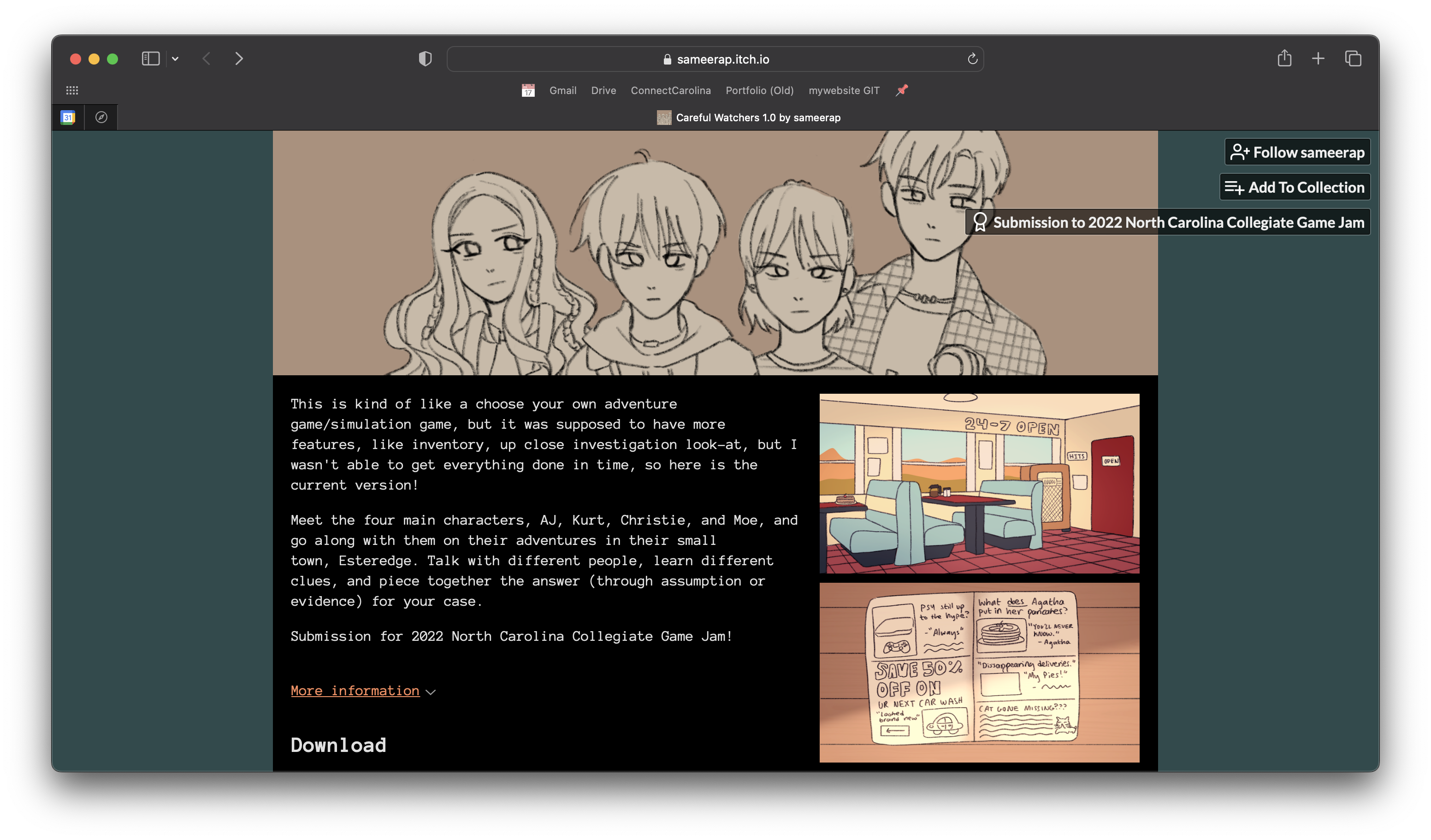 I am developing a game about a group of kids starting a detective agency! Play the demo version of the game here!