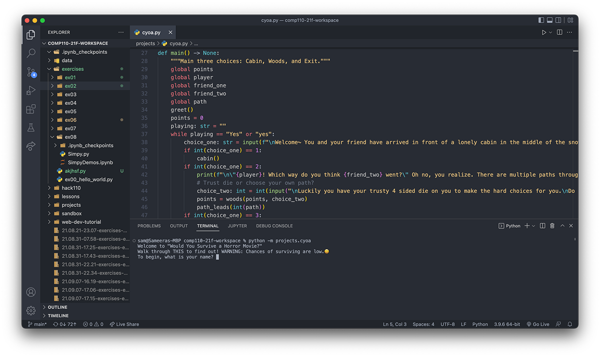 Created a haunted house simulation testing if players could survive a horror movie (designed,
